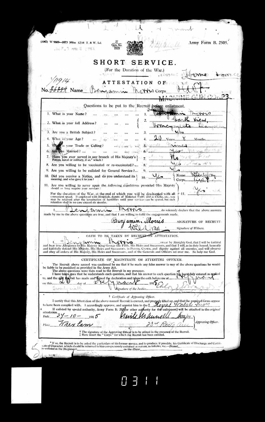 Benjamin Morris's Service Record -