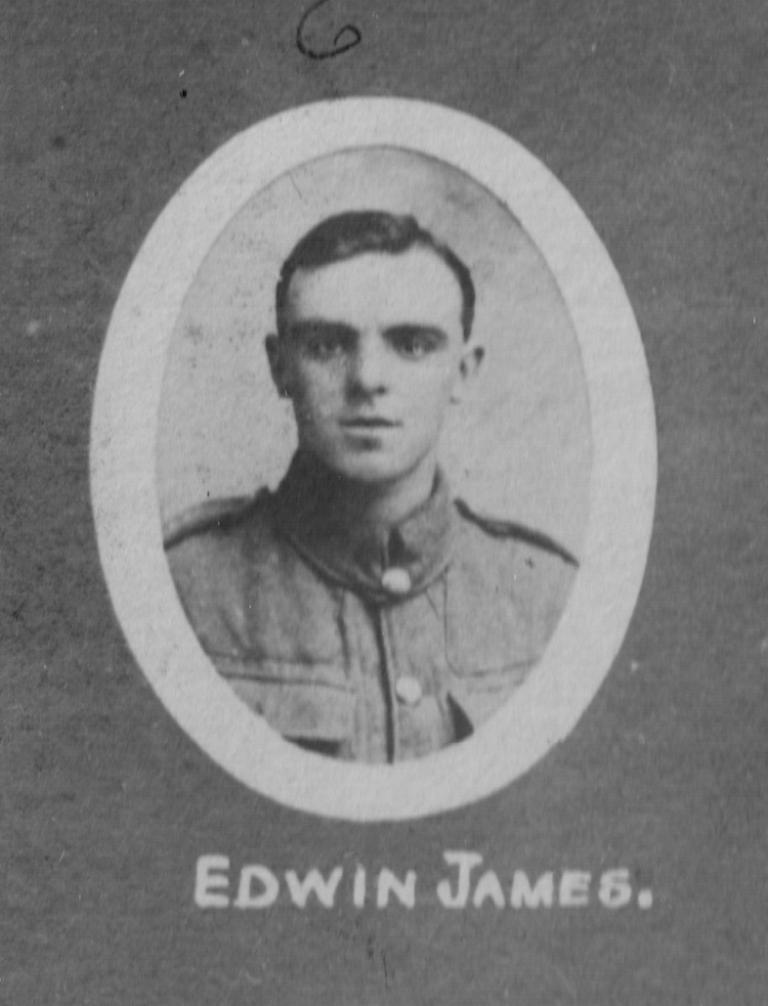 Edwin James was born in Llangollen January 1896, son of Edward James, of Swan Terrace, Froncysyllte a labourer in a brickworks, and Mary Jane James (nee Thomas). Edwin became a farm labourer, and was living in Roadside Cottage, Fron when he enlisted at Wrexham on 20th November 1915.