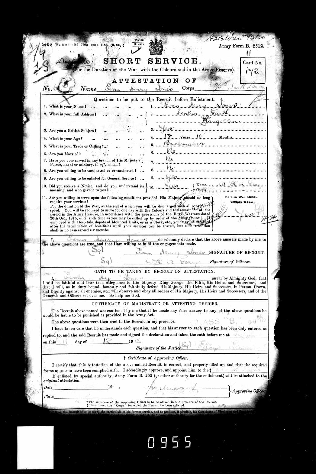 Evan Henry Jones' Service Record -