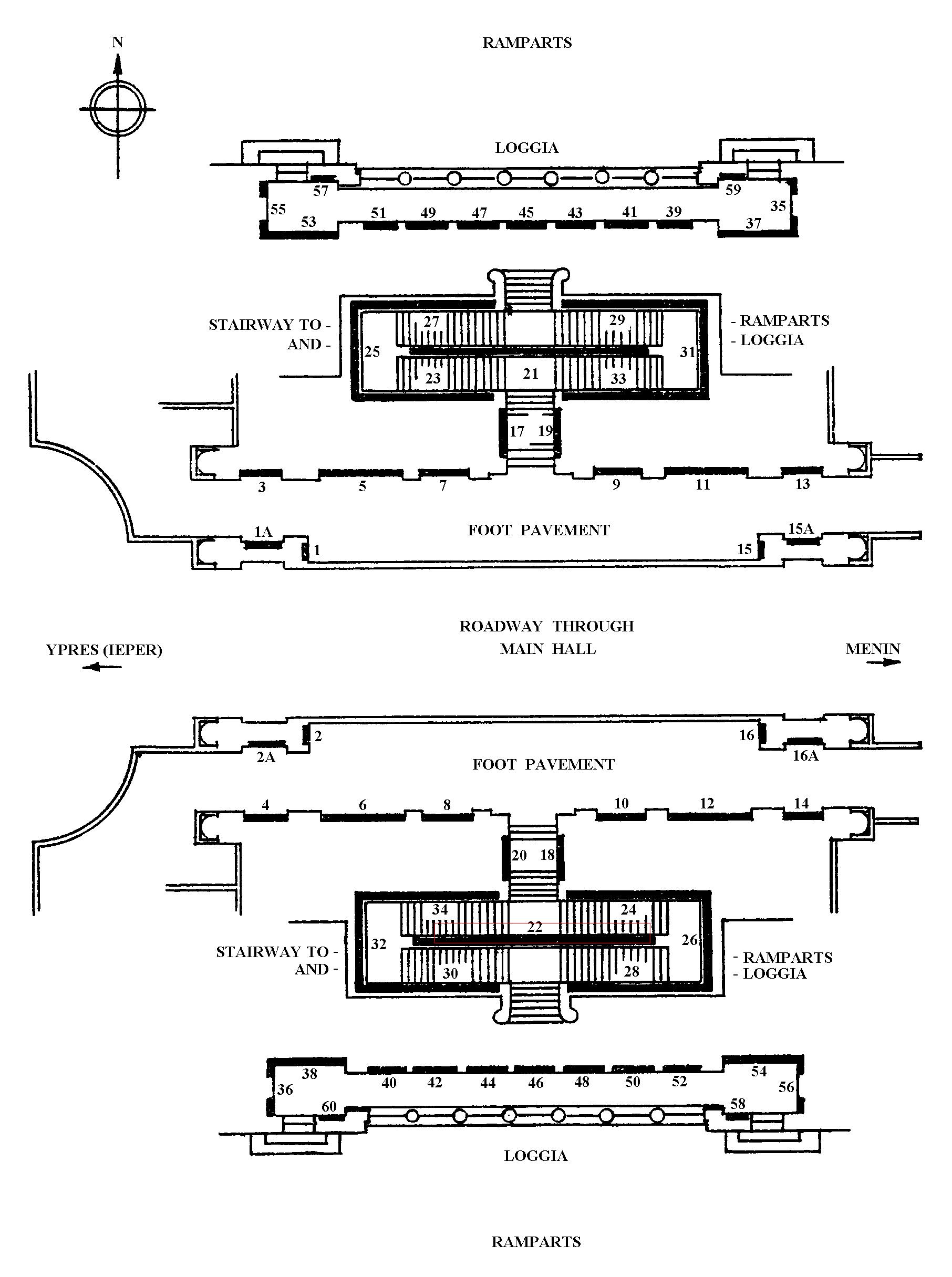 Plan of the Menin Gate Memorial with Panel 22 marked