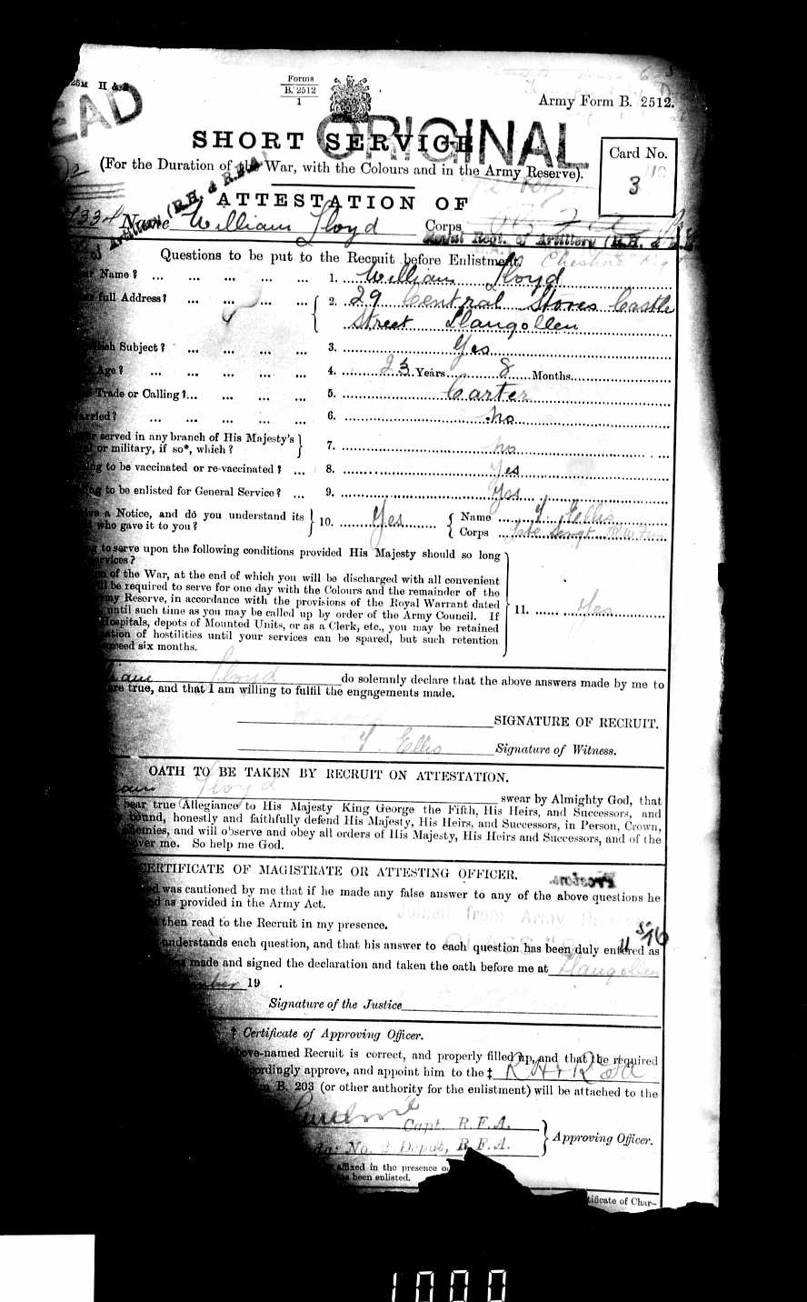 William Lloyd' Service Record -